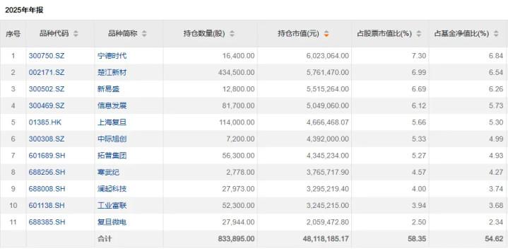 富达低碳成长混合前十大重仓股则包括新易盛、信息发展、上海复旦、中际旭创、寒武纪、澜起科技、复旦微电等个股。