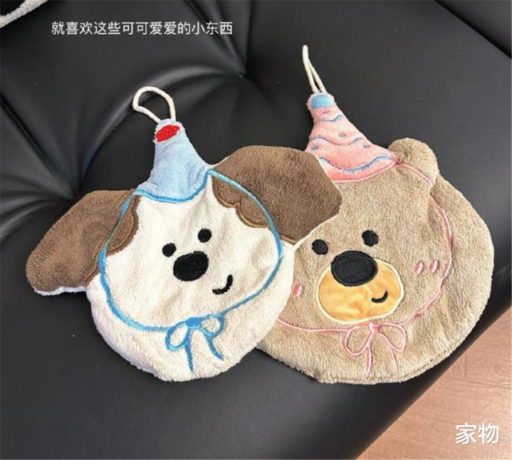 一个挂在厨房,一个挂在卫生间,小狗小熊的造型实在是憨厚可爱,让人忍俊不禁。