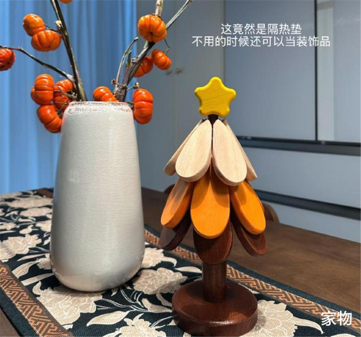 本以为是个放在桌子上的圣诞树摆件,谁曾想其实是一组三个的隔热桌垫。