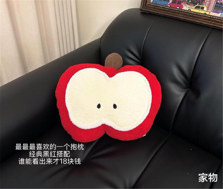 造型就是一个横切开的苹果样式,红白黑三色简单耐看,放在现在主流的家居装修风格中不仅不会突兀,还能为室内增添可爱氛围和活力。